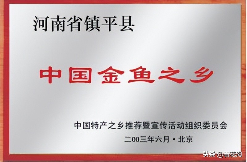 42.镇平县的著名特产-镇平金鱼。镇平县侯集镇1992年被河南省命名为"中州名镇".2003年6月被命名为"中国金鱼之乡".观赏鱼品种有紫寿桃、红白花琉金、蝶尾龙睛、熊猫、红朝天龙、黑朝天龙、红朝天高头球、软鳞铁包金虎头、红白、白牡丹、十二黑并蒂桃、皇冠珍珠、朱砂球三色罗袍、红背朱砂泡、红头虎头、三色帘鳍葡萄眼、黑蝶尾、长尾红、昭和三色、红龙睛、蝶尾龙睛、红琉金、玉顶红水泡等。
