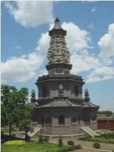 临济寺澄灵塔坐落于正定县城生民街东侧临济寺内,俗称青塔、衣钵塔,是国家级重点文物保护单位。 澄灵塔举高30.7米,是一座砖砌八角九级密檐式实心塔。澄灵塔既是中日人民友好的历史见证,又是促进中日两国人民世代友好的纽带。该寺于1984年由文物管理部门移交佛教团体。1986年以后,先后重建了大雄宝殿、法乳堂、传灯堂以及山门殿等建筑,使之成为正定名刹。2001年06月25日,临济寺澄灵塔作为金代古建筑,已被国务院批准列入第五批全国重点文物保护单位名单。