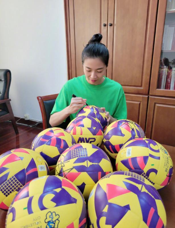 今日,魏秋月分享了近期的一些趣事。其中一张照片,魏秋月正在认真地给众多排球签名。而另一张则是她的自拍,魏秋月穿着绿色衣服,非常显年轻,看上去完全不像已经34岁了,如同少女一般。