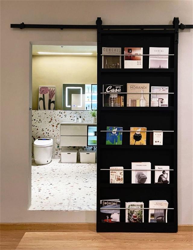 整个门靠吊轨移动开合,无需门套、门框这些复杂设计,视觉简洁利落。左右推拉门不占空间,对小户型十分友好。