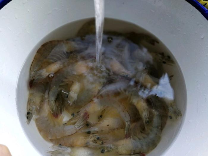 3.处理好的虾,用流水清洗干净,大家在洗的时候,切记要用流水,洗干净后在将虾捞出来沥干水分,如果家中有厨房用纸,可以用纸将虾上的水吸干净。