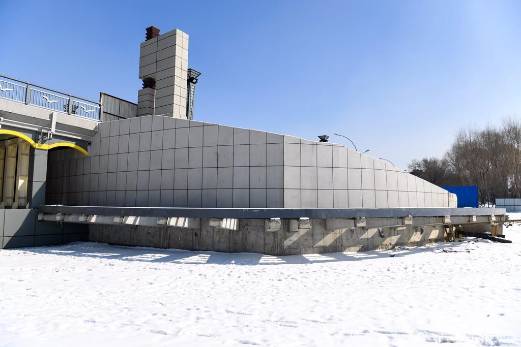 冬歇期的原因,栈桥只建了基本的框架,栈桥桥板和栅栏还未修建,冬歇期过后,在3月中下旬,两座栈桥将继续建设,预计今年5月中旬完工并投入使用。