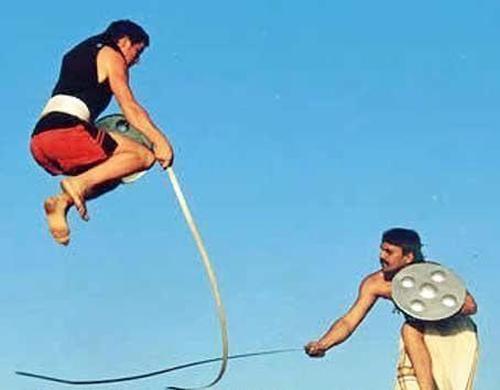 印度软剑构成可以是单刃也可以是多刃,运用技术非常难掌握,需要长时间的磨炼,方能运用自如。