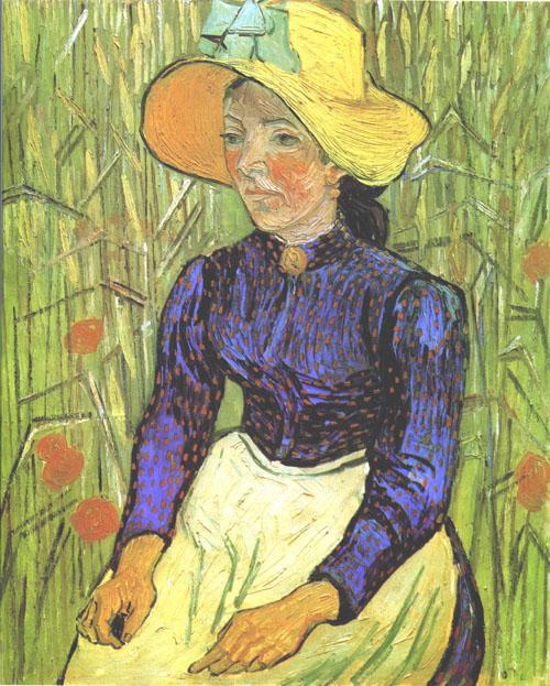 1890 坐在麦田中戴草帽的年轻农妇 私人收藏