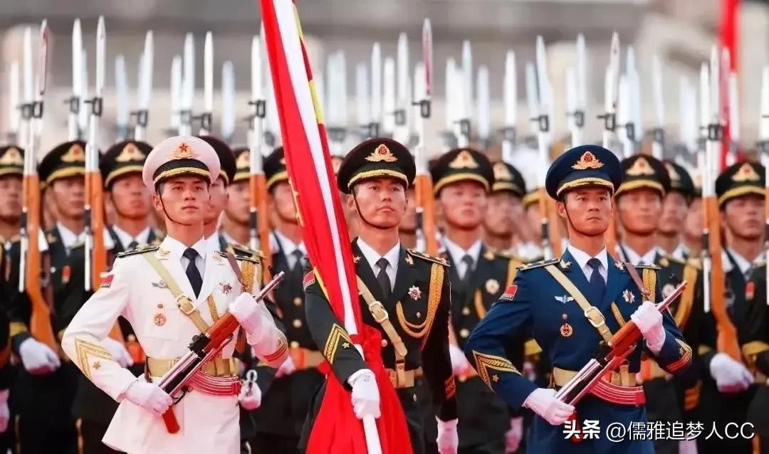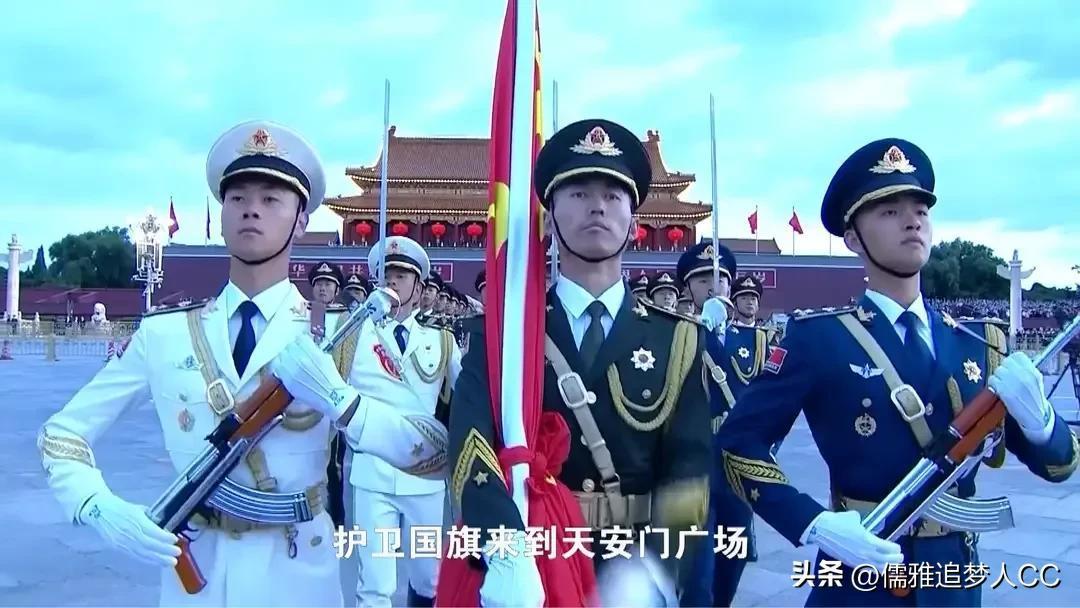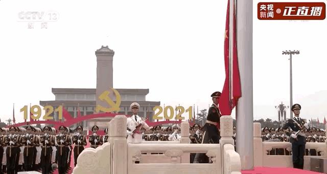 2021年7月1日,庆祝中国共产党成立100周年大会上,在全国人民饱含期待的目光注视下,中国“最帅天团”三军仪仗队,迈着整齐的步伐护送着五星红旗,从人民英雄纪念碑行进至广场北侧升旗区。