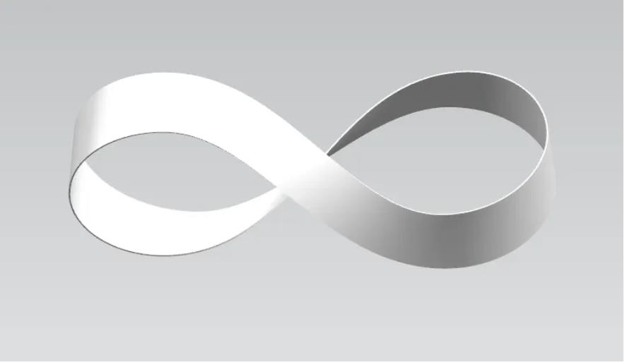 接下里,我们分析第二个方面:或许你在高中数学课上面看到过数学老师用纸条做出来的简易版莫比乌斯环,其实它就是可以用一条纸条将它扭转180°之后,将纸条的两头粘粘起来,这就形成了莫比乌斯环。