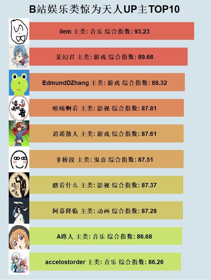 首先看一下进入TOP10的阿婆主们: