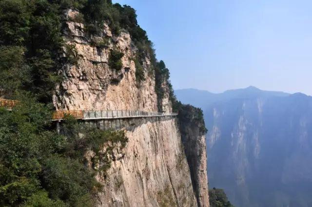 在海拔千米以上的高空绝壁,脚踩玻璃栈道,耳听呼呼山风,不仅可以欣赏山间美景,更能体会漫步云端的惊险刺激!