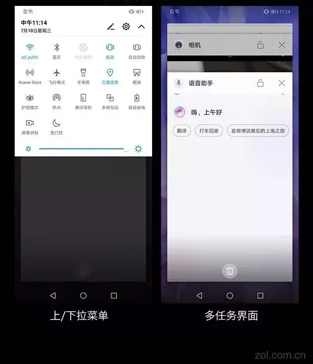 EMUI 8.2还针对用户的使用需求开发出了智能语音助手HiVoice、智慧识屏HiTouch和智慧助手HiAssistant。Hivoice能完成复杂的语义理解,真正做到“听懂人类语言”,并支持多轮语音交互。HiTouch则可对选中的文本进行检索,并可生成最多12种服务卡片。HiAssistant则囊括了快递智能提醒、全局收藏、智慧推荐、情景智能卡片、智能通知等功能。