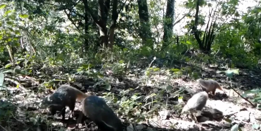 近日,在云南普洱景东境内观测到4只食蟹獴生活的情景,这是食蟹獴父母带着它们的幼崽在林中觅食,有经验的父母走在前方,幼崽则乖巧地跟在后面,每走一段路,食蟹獴爸爸就会直立起身体来观望一下,确保无危险后才继续前进。
