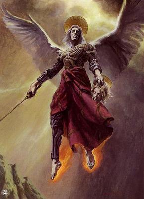 右手剑,左手秤就是米迦勒的标准形象。在犹太人的传说中,耶和华用火创造了米迦勒,因此米迦勒同时是四大元素中火的代表。