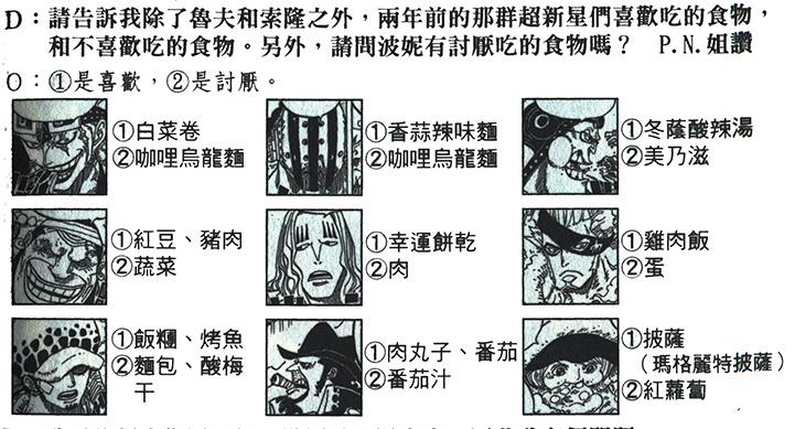 下面这个是尾田补完了超新星们喜爱和讨厌的食物,这些细节设定一般女粉丝们都会比较在意,哈哈。