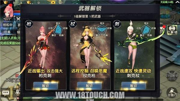 进入游戏首先面临角色选择,乍看之下只有1男1女两个人物,实则游戏采用无职业的设定,角色的技能和定位完全依据武器而变,不同种类的武器对应不同的技能,且纸娃娃系统下角色的外貌也会随之改变。初始时玩家可以选择任意一种武器职业定位尝试,在达到指定等级会其余武器也会逐渐解锁,届时多种风格操作皆可信手拈来。一个角色体验所有,再也不怕逼死选择困难症的童鞋了。