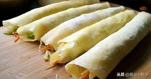 食饼筒食饼筒起源于黄岩,又称麦饼筒。用麦粉放贴锅,烙成大而圆薄饼,放肉片、绿豆芽、蛋皮、笋、豆腐干、米面等馅料,卷成筒状而食。传说在戚继光抗倭时期,家家户户都做了菜肴想要犒劳大军。但是这么多菜怎么送去军营着实是个难题,于是聪慧的渔家女就做了饼皮,把菜都包了进去送给士兵们。台州食饼筒是浙江省台州市椒江区的特色小吃。
