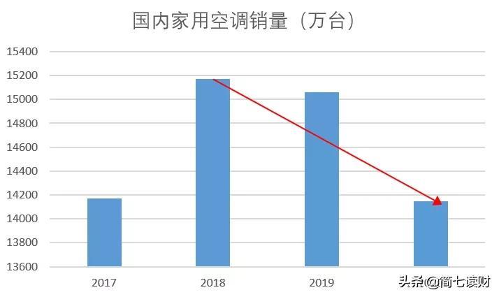 我们看2018年,国内家用空调的总销量达到了顶点,那年之后就开始下滑了。