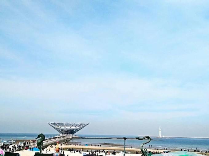 往远处看的话,能看到婀娜的鲅鱼公主,这个位置可以借位拍照,创意就看你自己啦!此处还有一个观景台,是需要收费的,上去可以看到更广阔的海面,景色不错的。