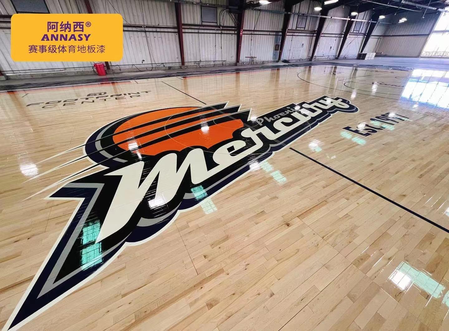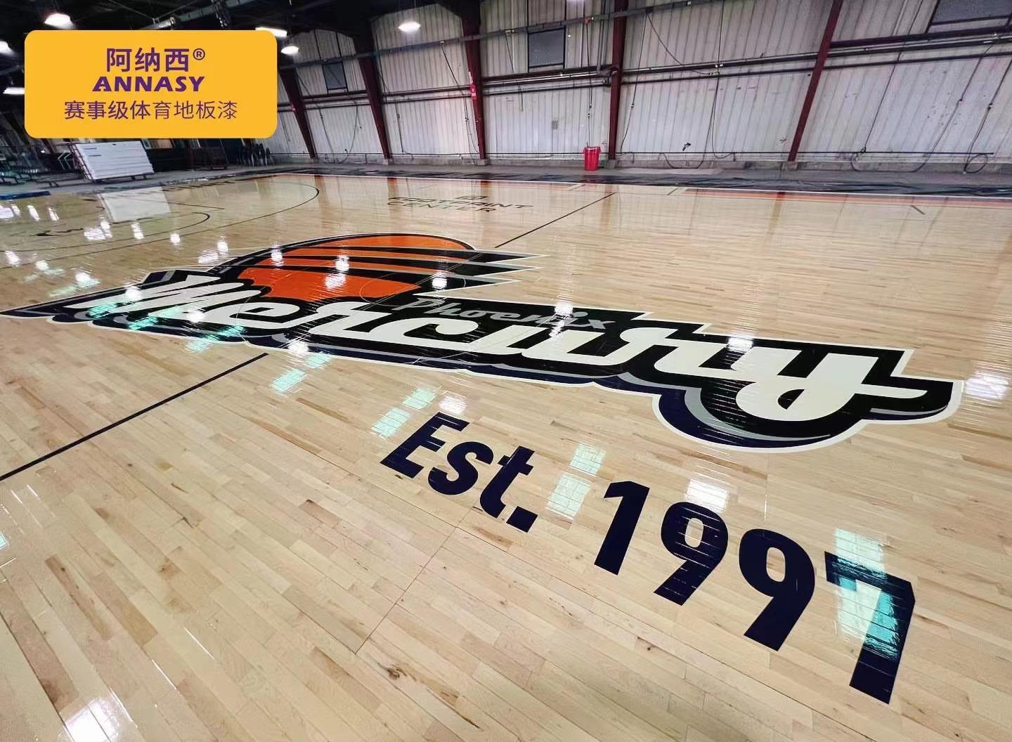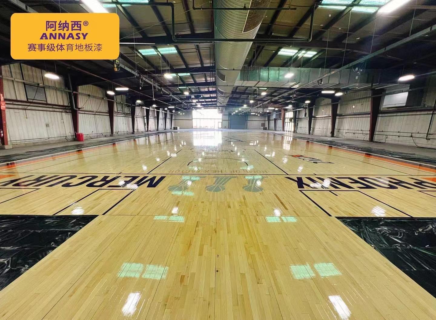 优质的篮球场地面漆拥有防水、防腐和防滑增亮的效果,是在运动木地板打磨过程中必不可少的一环。