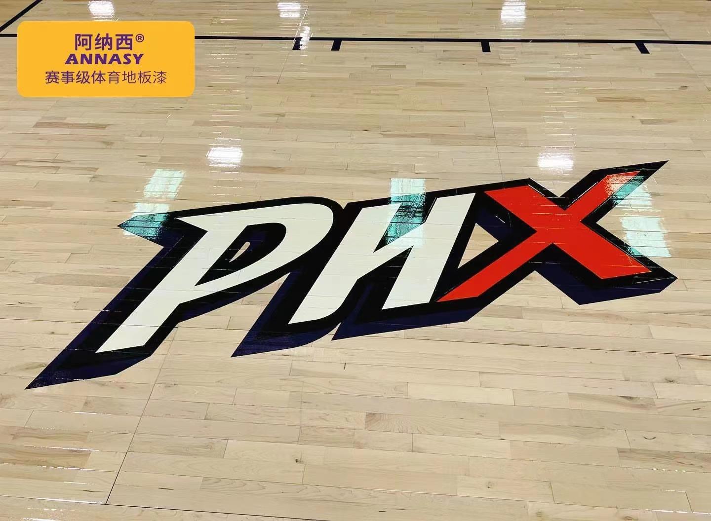 专业的篮球馆上都会附着着优质的篮球场馆木地板彩漆logo,其色漆通透明亮、光泽莹润饱满且具有层次感,当灯光从上往下投射的时候,让仿佛置身于NBA比赛现场,感受强烈的视觉冲击。
