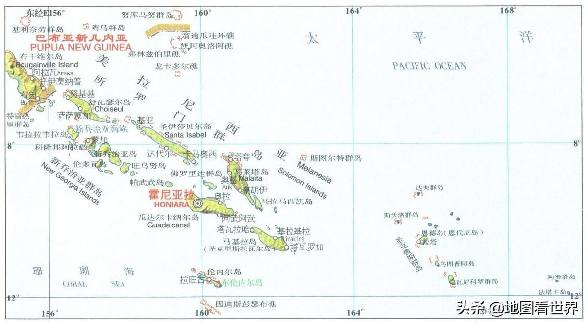 所罗门群岛还是国名带“群岛”的3个国家之一,另外两个是马绍尔群岛和库克群岛。后续文章会介绍另外两个“群岛”国家。