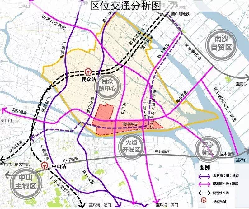 8号线:沿众安大道规划城市轨道交通8号线支线,北至南沙接广州地铁十八号线,南至中山市中心城区