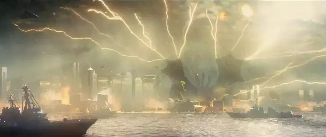 相较于第一部中“犹抱琵琶半遮面”打酱油式的哥斯拉,第二部无疑满足了广大直男粉的需求,不仅开场哥斯拉就放大招,并且一直持续到电影结尾。