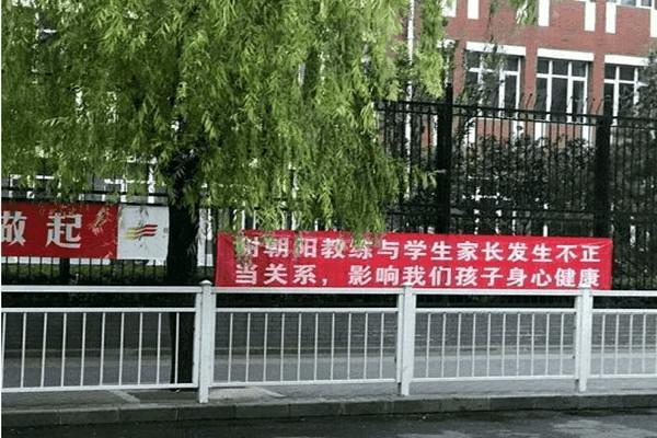 5月17日,网上盛传了一张图片,北京十八中学校一条关于“谢朝阳教练与学生家长发生不正当关系,影响我们孩子的身心健康”红色条幅。