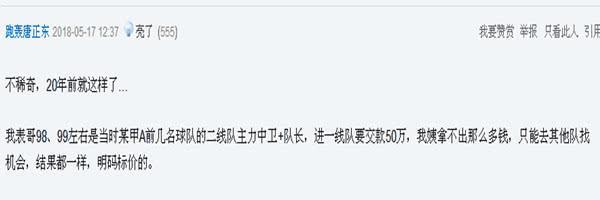 由来已久是不是很可怕,怪不得中国足球上不去呢?为了上一队明码标价,还50万,还他妈“河蟹”……