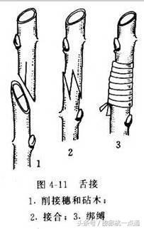 3、舌接:一般适宜砧径lcm左右粗,并且砧穗粗细大体相同的嫁接。