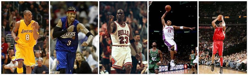 对于很多老球迷而言,乔丹以及之后的科比、艾弗森、麦迪、卡特都代表着他们青春里最美好的一段记忆,每每想起乔丹神一般的地位、科比的后仰、麦迪的干拔、艾弗森的突破、卡特的扣篮,他们心中总有一股热血在沸腾,一份豪情在涌动,球迷们也亲切地将这5人称为“西科、东艾、北卡、南麦、中乔丹”。