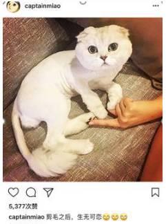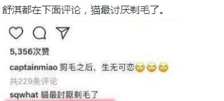 舒淇都在下面评论,猫最讨厌剃毛了。