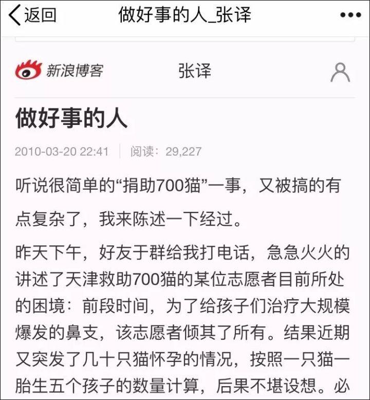 最广为认知的就是“捐助700猫”事件...