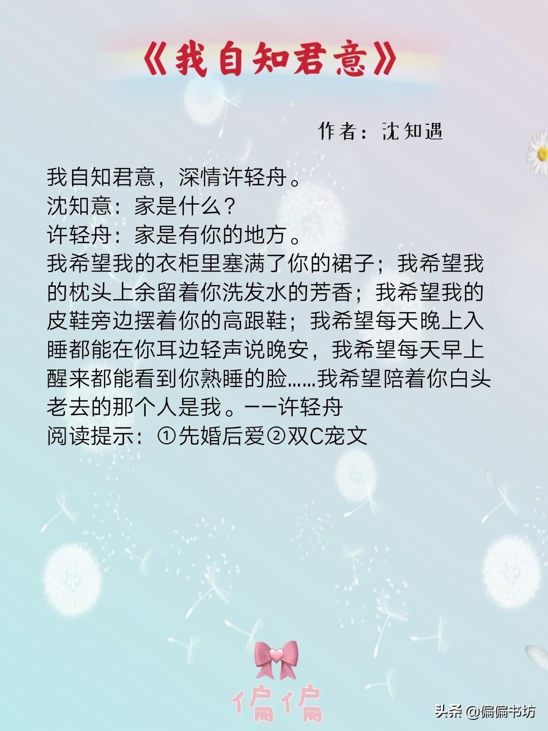 大家好,这里是偏偏,今天给大家推荐几本先婚后爱,日久生情的婚后文。都是比较轻松温馨的治愈系列。