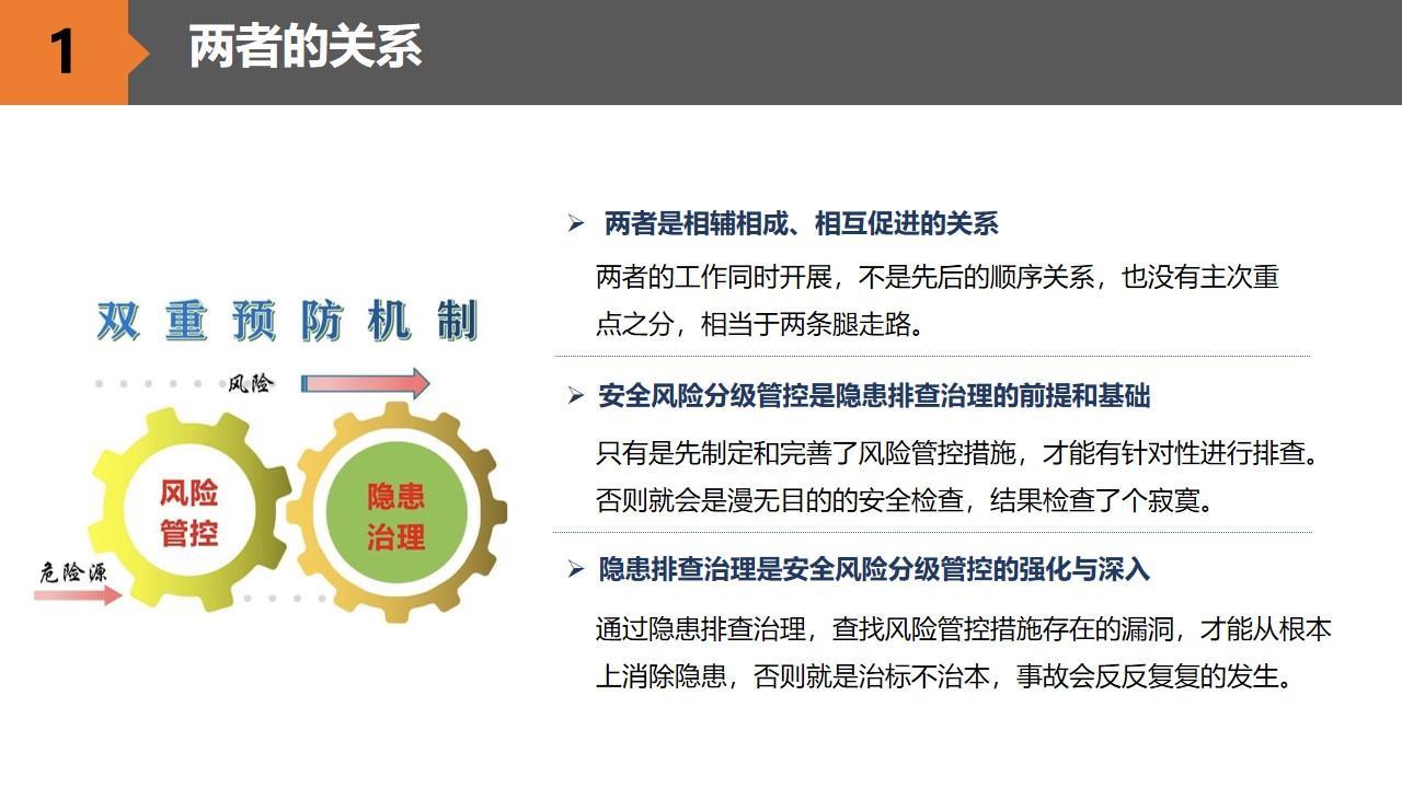 一个是风险分级管控和隐患排查治理两条腿走路,一个是隐患排查治理一条腿
