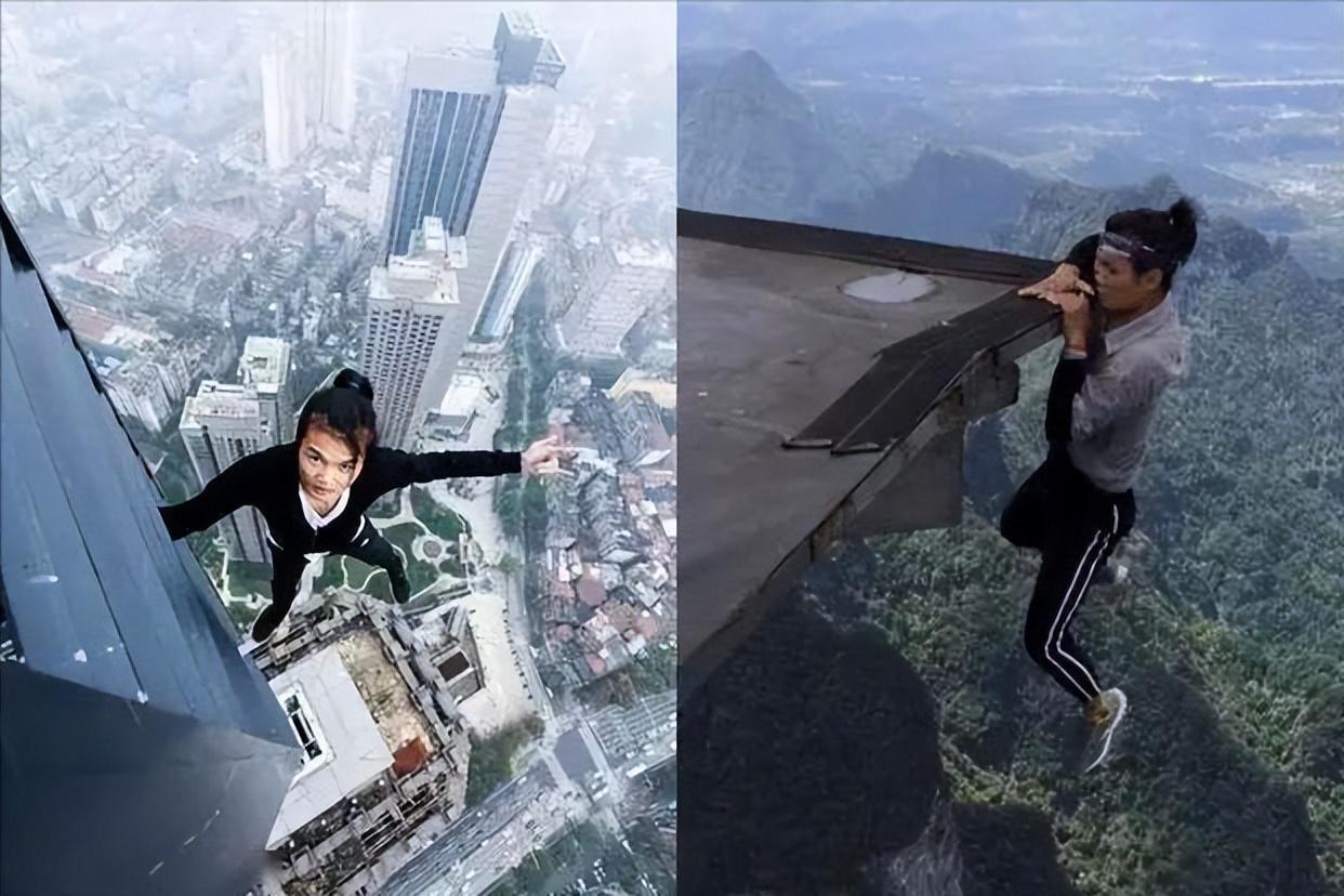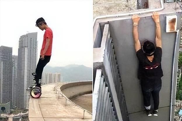 后来,他开始尝试在100米的高楼平台边缘翻跟头,徒手攀爬200米高的大厦,在300米的高楼平台边缘玩平衡车,在400米高的建筑顶峰单手悬空自拍,甚至在景点高处的栏杆外做引体向上。