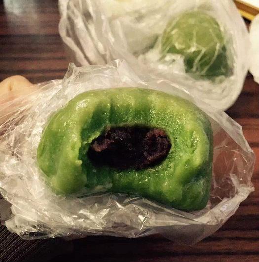 说起老大昌,大家一定对冰糕印象深刻吧,老大昌的青团阿姨妈妈们还是很喜欢的。他们家的青团捏着特别软。全团的皮颜色很深,不是碧青的草绿。皮挺厚的,带有一点微甜。咬下去特别糯但很费嚼劲,得慢慢吃,一个下肚很粘糊敦实。豆沙馅细腻且甜度低,豆沙馅也很粘,吃起来是融在一起的糯米团子的感觉。