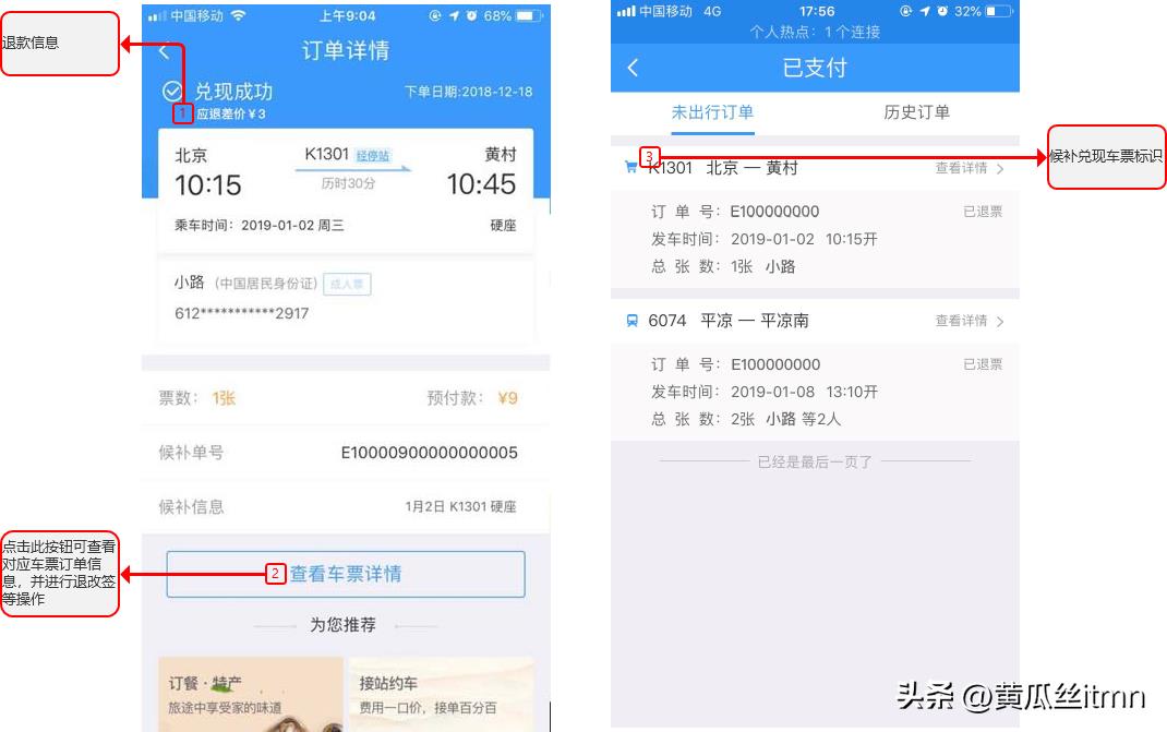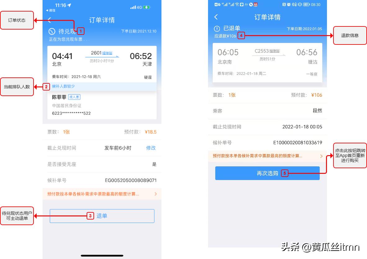 候补购票预付款支付成功后,系统将持续尝试为您兑现候补需求(同一候补需求不进行部分兑现),若有匹配需求的车票,系统将自动为您生成已支付订单,预付款大于实际票款的,系统将自动退回差额票款;若无满足您需求的席位,将在截止兑现时间自动终止兑现,用户主动终止或系统自动终止候补的,系统自动原额退还预付款。