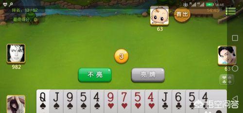 2、出牌的时候每轮每个人都必须出牌,如果首家出方块,后边的三个人必须都跟着出方块,没有方块的可以用其他的来代替。A最大,2最小,如果没有你用别的花色代替,那么算你小,如果有分牌,最大的可以得到所有分,当然包括负分,所以有时候大牌也不是好事。