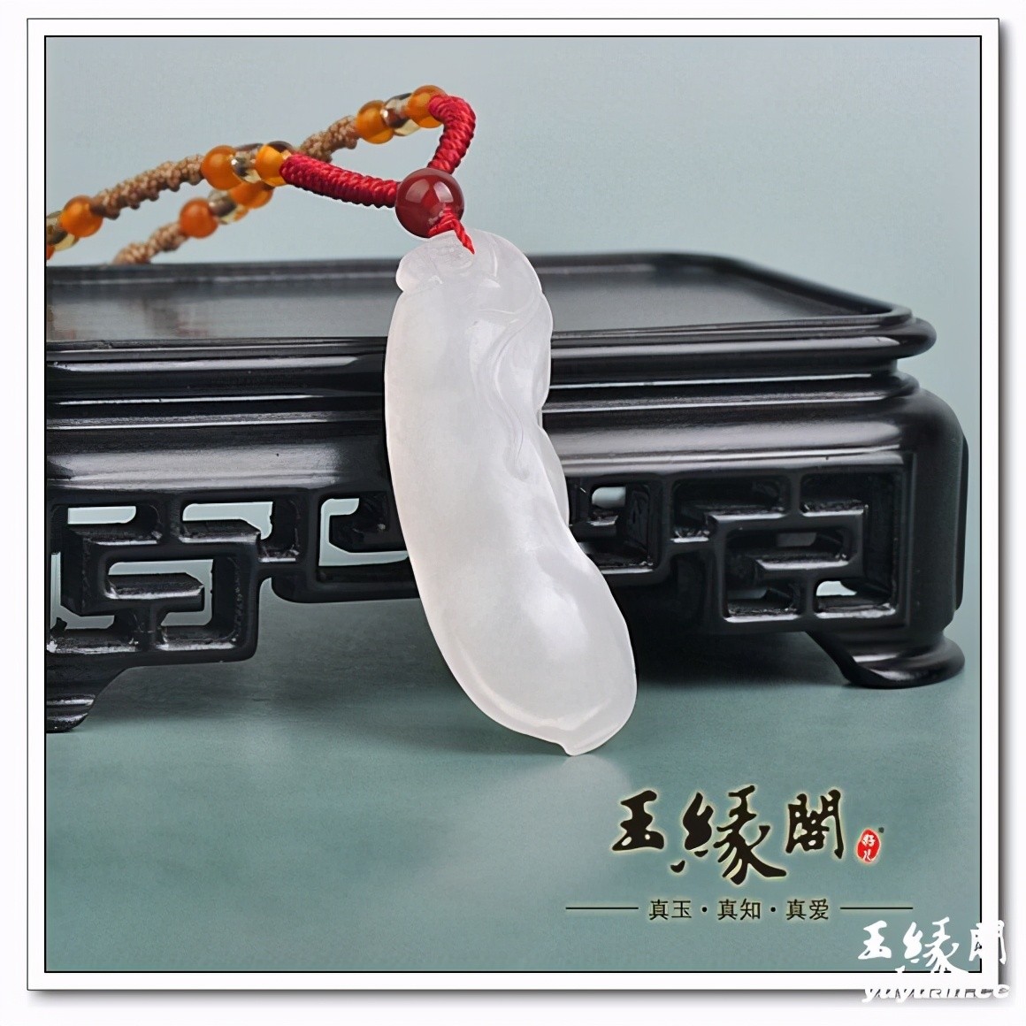 除了圆环状的平安扣,还有一种是四季平安扣,一般状如单个四季豆荚。它的由来是因为在古代的寺庙之内,将四季豆荚做菜,所以四季豆荚被作为平安扣运用到玉挂件的雕琢之中,寓意平安圆满。