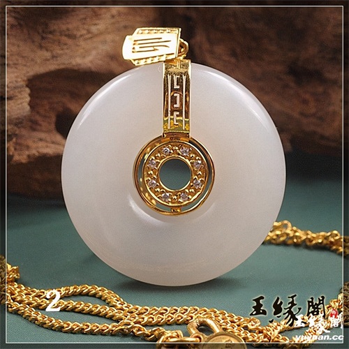 平安扣状如圆环,它圆形的外观符合中国人的审美观,又是传统的一种配饰。它于古代的铜钱有一些相似,而古人相信铜钱可以保平安,但是铜钱却缺乏美感,这时就出现了和田玉的平安扣,不仅美观且又有美好的寓意。平安扣外圆象征着辽阔的天地,内圆祈求内心平宁安远。