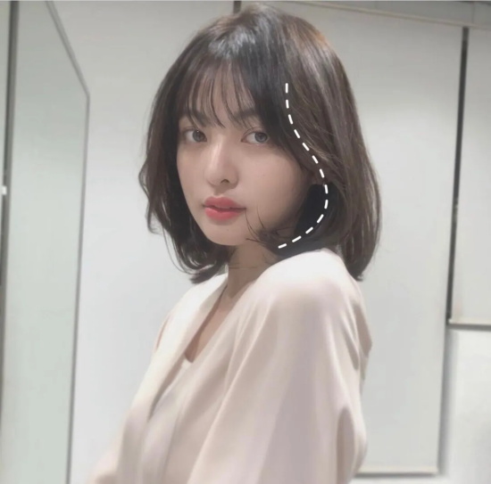 相比之下,增加空气刘海后更显气质,温柔大姐姐既视感有了,也不用担心显露发际线的问题。鬓角两侧的头发一定要剪出层次感,发尾再轻微内扣,修饰脸型的效果绝了!