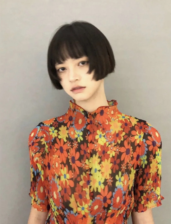 #无刘海短发这种没有任何刘海遮挡的短发非常考验脸型,尤其不适合大圆脸和长形脸,容易在视觉上增宽和拉长脸部线条。而且鬓角两侧的头发也没有作层次化处理,对发量少的仙女们来说也是一大禁忌。