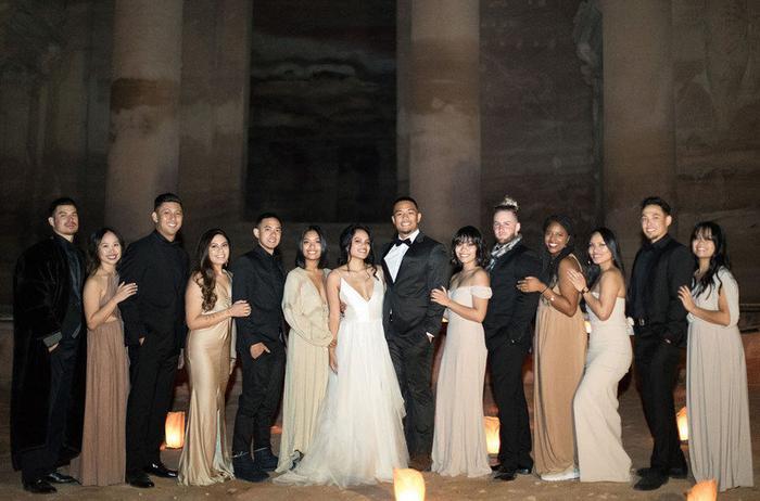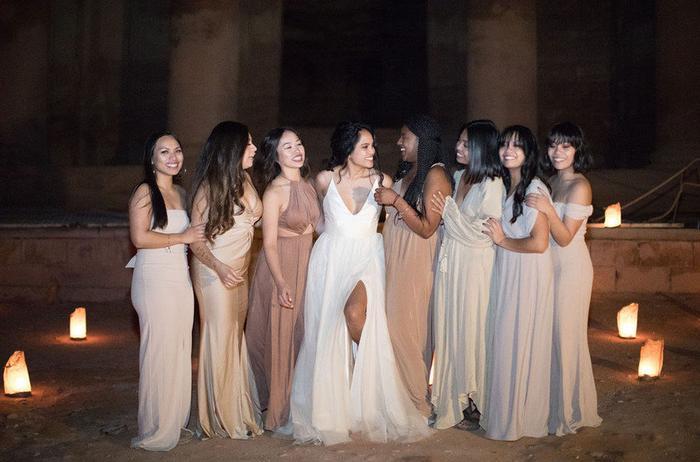 Caitlin和Joel的佩特拉卡兹尼神殿婚礼被深厚的历史包围,充满了冒险精神! 他们在夜幕下,在昏暗的烛光下,在卡兹尼神殿前举行了婚礼。卡兹尼神殿或 “Al-Khazneh “是佩特拉最精致的寺庙之一,佩特拉是纳巴泰王国的一个城市,古代阿拉伯人就生活在这里。Caitlin分享了仪式上最喜欢的一段记忆。