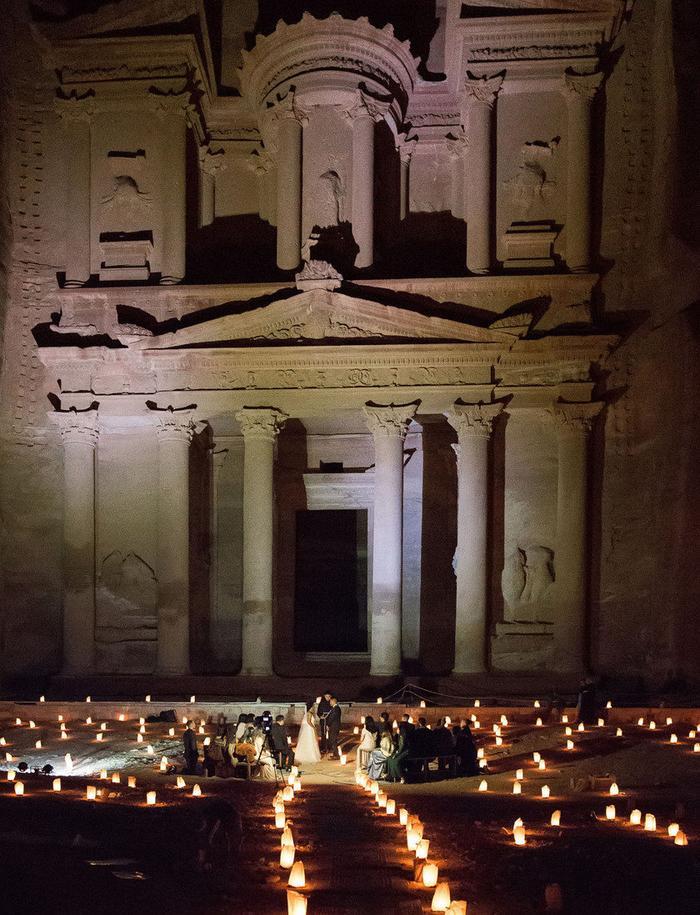 私奔婚礼 | 佩特拉卡兹尼神殿前的神奇夜景婚礼仪式