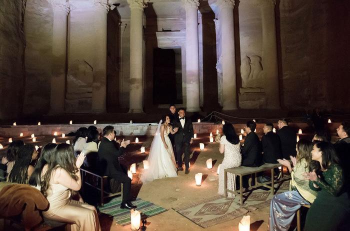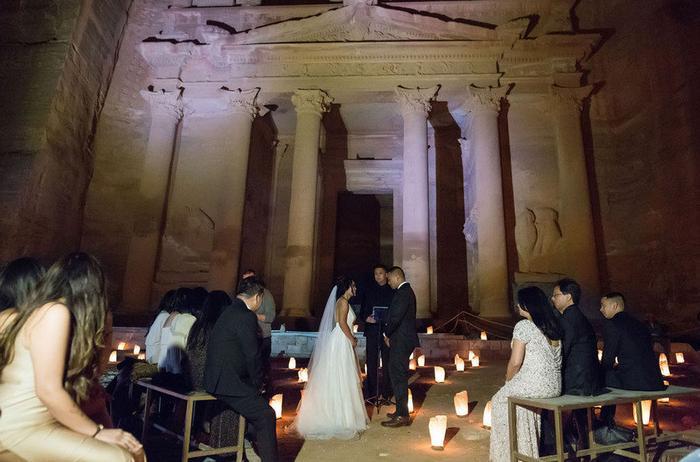 我们喜欢他们独特的佩特拉卡兹尼神殿婚礼!