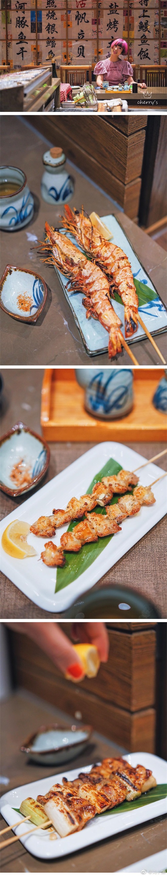 回京第一餐,伊藤酒菜处这场景却让人依然如置身东京,特意早来坐进炉端烧这一隅,前两次来时都被包场,眼馋了好一阵儿。挑选了最佳“景观位”,看着师傅料理台前烟火气袅袅...店里也应着樱花季的景,上新几道花季美味,樱花mojito,樱花木烟熏澳洲眼肉,樱花虾炒饭,樱花布丁.....一道都不拉的点了单,味蕾赏樱也是一样美妙啊!