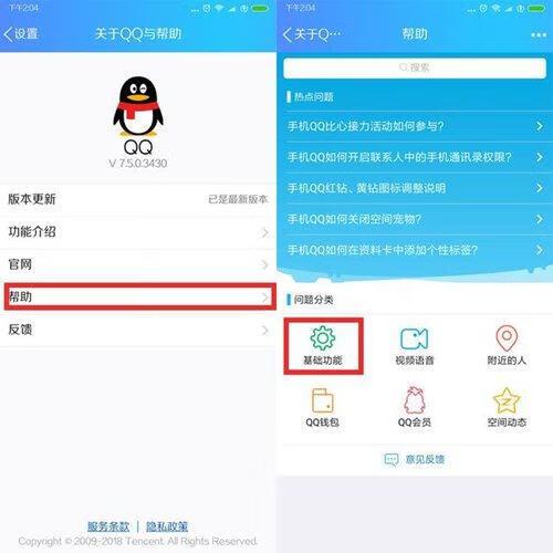 4、在“帮助”页面中我们可以找到很多腾讯官方给出有关QQ的问题,这里我们需要点击“基础功能”,如图所示。