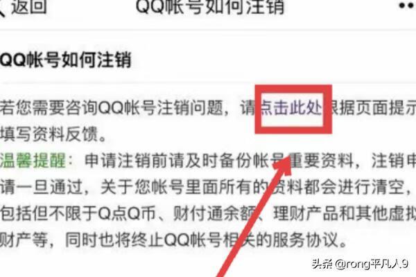 6、大致阅读腾讯官方给出的温馨提示后,点击“点击此处”进入注销页面。