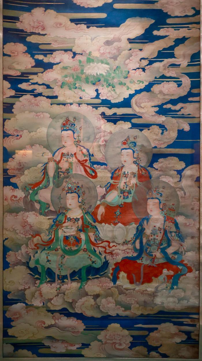佛的宝相庄严,菩萨的雍容华贵,诸天的飘逸唯美,世俗人物的仪态万千,纸绢之上尽开颜。斑驳于壁上、纸绢的众灵影身,凝聚着数百年前画师们勾描填涂的匠心传承,跨越古今,人同此心,今天我们依然能够读懂水陆画中汇聚的审美意趣和美好祈愿。