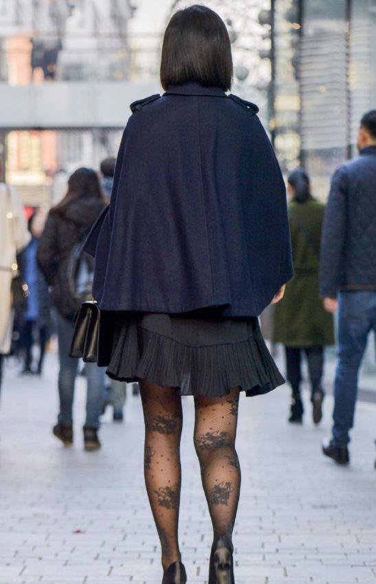 街拍:冬天里的丰满少妇,黑丝+高跟鞋,迷人背影让人心动
