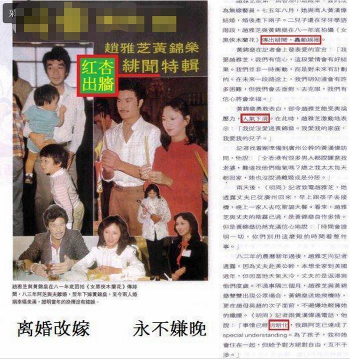 被“小三”公开告白,赵雅芝一时间饱受舆论压力,她向记者表示:“我从没爱过黄锦燊,我爱我的家庭,我爱我的儿子。”
